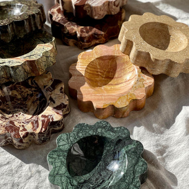 Scalloped and sculptural—the Mini Sun Scoop is a five-inch catchall carved from solid stone. Cut from a single block, its rhythmic edges frame a sh...