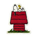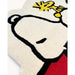 The Peanuts Dog House is a wool rug with the iconic dog house. The rug shows Snoopy and Woodstock chilling on top of the dog house.