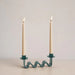 Wavy Forest green metal candle holder for two taper holders. Fair Trade Certified.