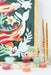 Koi Fish in Pond paint-by-number kit features two stylized carp in a pool of water swirling with lily flowers and vines. The pre-printed background features a deep green pool. Completing the acrylic painting can take 8+ hours. When completed, select a frame at your local craft store and display your new handmade home decor! This DIY craft is recommended for adults and teens age 13 and up.