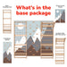 The set features 18 sturdy panels, each printed with a mountain design, divided into three versatile modules: