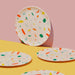 - Made from bamboo fiber, cornstarch and printed with food grade ink