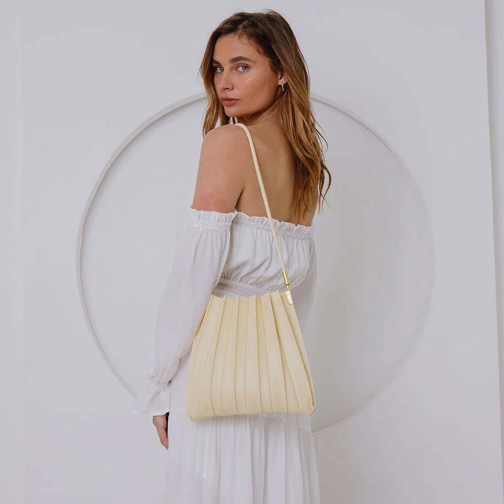 Carrie's irresistible allure and luxurious touch will captivate you in an instant. This medium shoulder bag offers ample space and even includes a bonus pouch for added storage. The round, padded handle adds a touch of comfort and elegance.