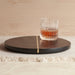 Ideal for serving appetizers with elegance, this tray features deep, vibrant tones and a sleek polished brass inlay that enhances its handcrafted wooden surface. Its rimless form offers a unique presentation for jewelry or small keepsakes. Available in a larger size as well.