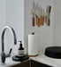 Wipe with a soft, damp cloth after use. Avoid acidic foods, harsh chemicals, and abrasive pads. Marble may be buffed with a touch of clean, natural oil to restore its shine. Brass and aluminum will slowly deepen in color, gathering the soft patina that comes only with time and touch.