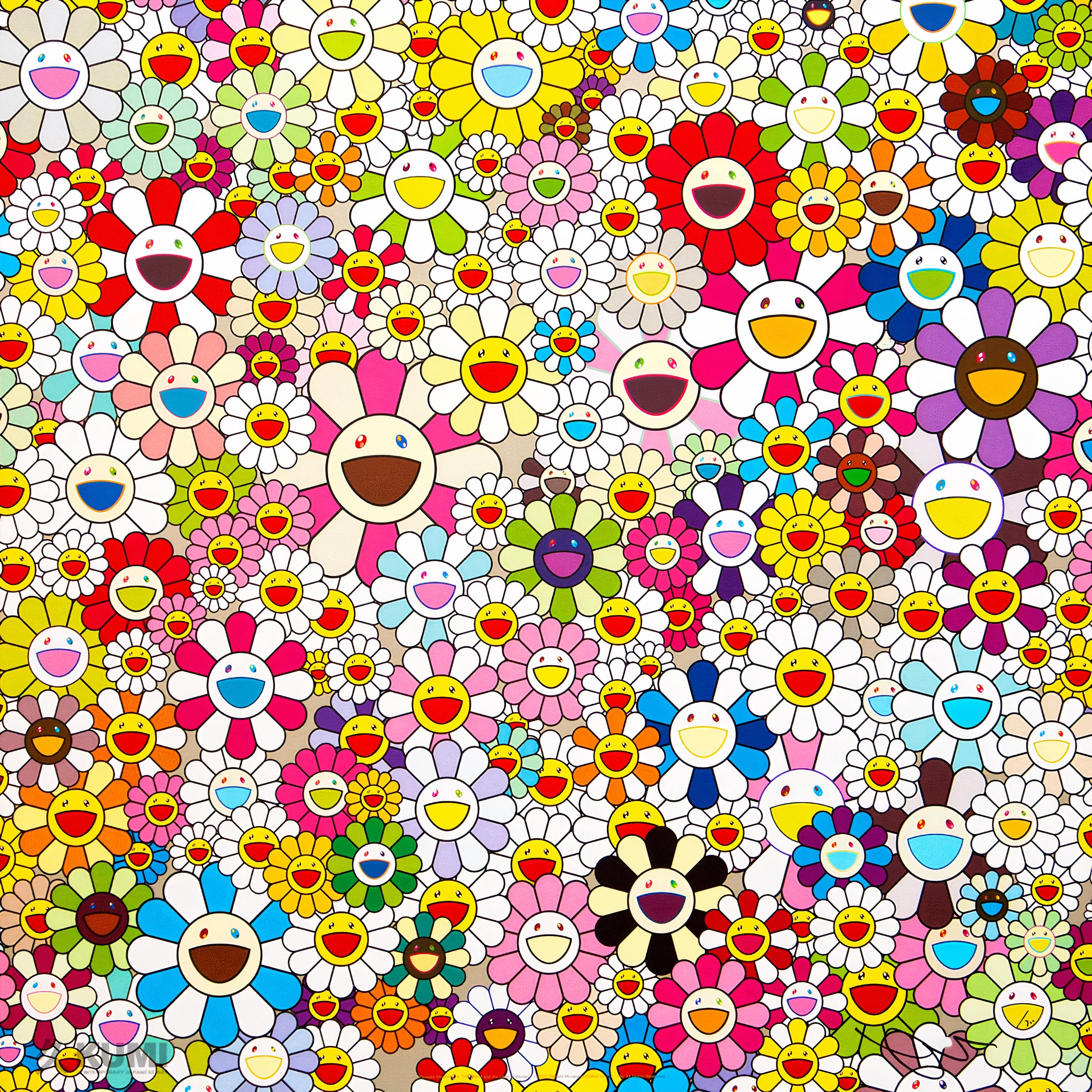 In his print, Flowers Blossoming in This World and The Land of Nirvana (4) (2013), Murakami coined the term “Superflat” to describe the cultural commentary and aesthetic preferences characteristic of his work and other contemporary Japanese art.