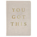 Write down all of your goals and dreams in our You Got This tan and gold fabric journal! With this chic, stylish, easy to write on notebook, there's no better place to jot down motivational notes, inspirational quotes, lists, and all of your great ideas! Perfect for work or school.